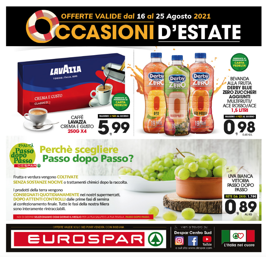 Iniziano da oggi lunedì 16 Agosto le offerte del nuovo volantino Eurospar occasioni d’estate!! SCARICA GRATUITAMENTE LA NOSTRA APP #COSENZAPRIME Seguici su Telegram! Navigazione articoli Nuove Offerte DESPAR Interspar e Iperspar Occasioni d’Estate!