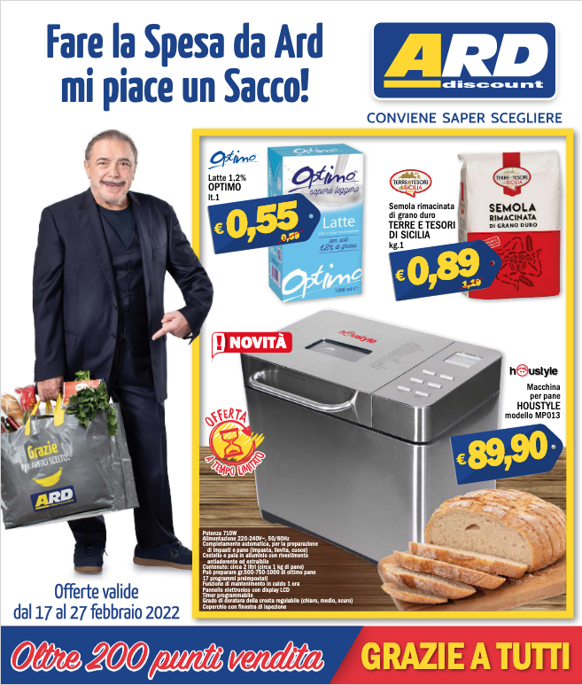 Fare la spesa da Ard mi piace un sacco, questo è il titolo del nuovo volantino Ard discount valido dal 17 al 27 febbraio 2022.